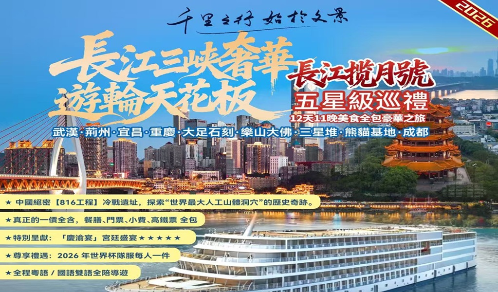 2026年 長江世紀遊輪「江山如此多嬌-山河頌」12日遊(上海-重慶)