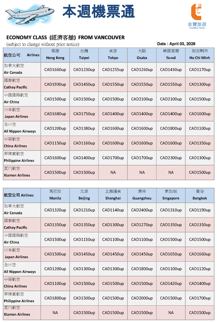 特價機票 (Special Airfare)