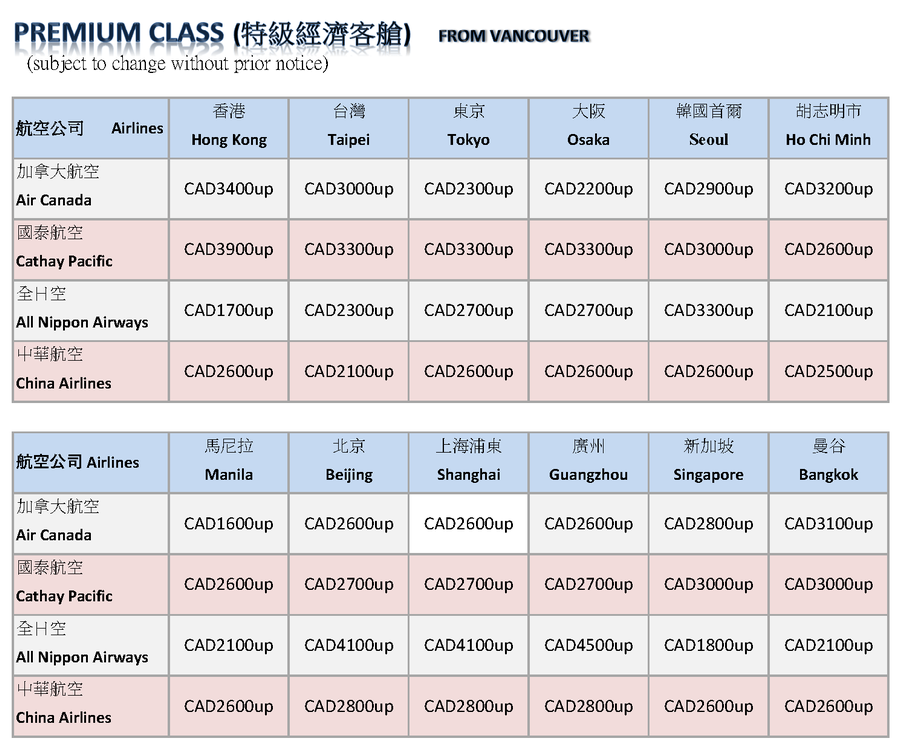 | 特級經濟客艙 | 03.04.2026 - 24.05.2026 / 15.08.2026 - 30.11.2026 | 14.04.2026 | $3,000.00 起 (含稅) (有效期 06 個月) |