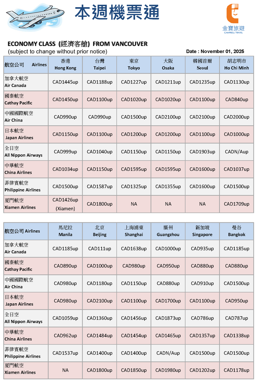 - 溫哥華一天遊 $73 起 (CM) (2025.04.01-2026.04.30)