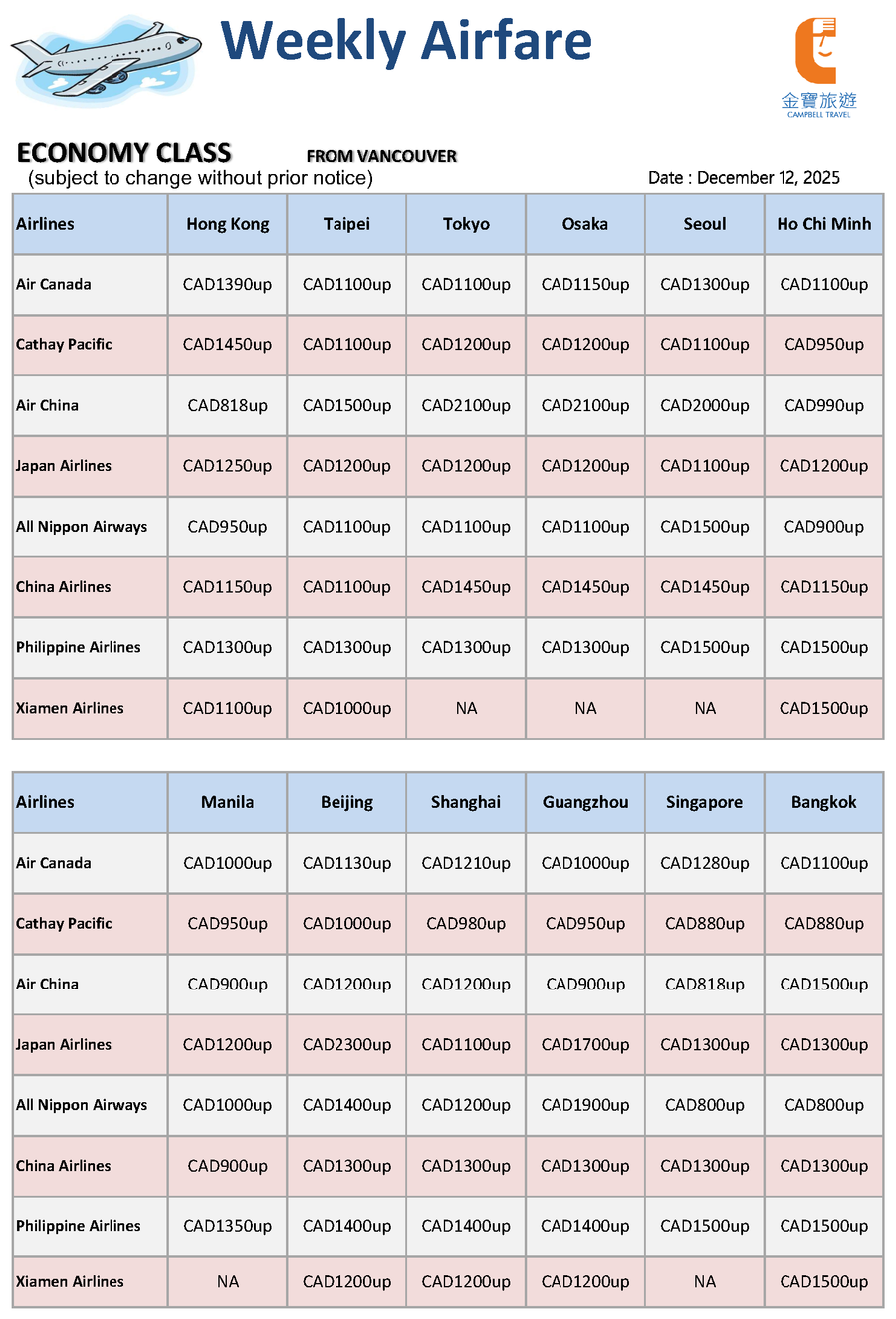 | Economy Class | 24.12.2025 - 24.05.2026 / 15.08.2026 - 06.12.2026 | 31.12.2025 | $1,200.00 up(Including Tax) (Valid in 03 Months) |
