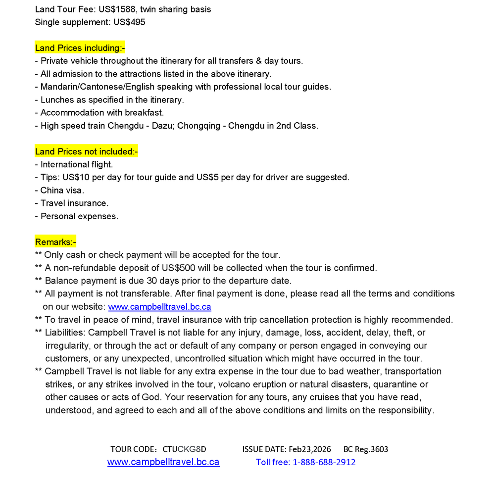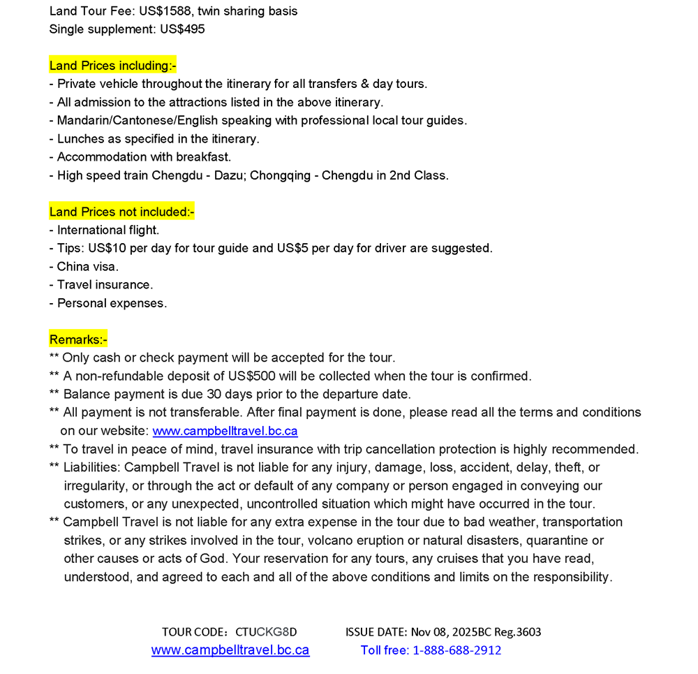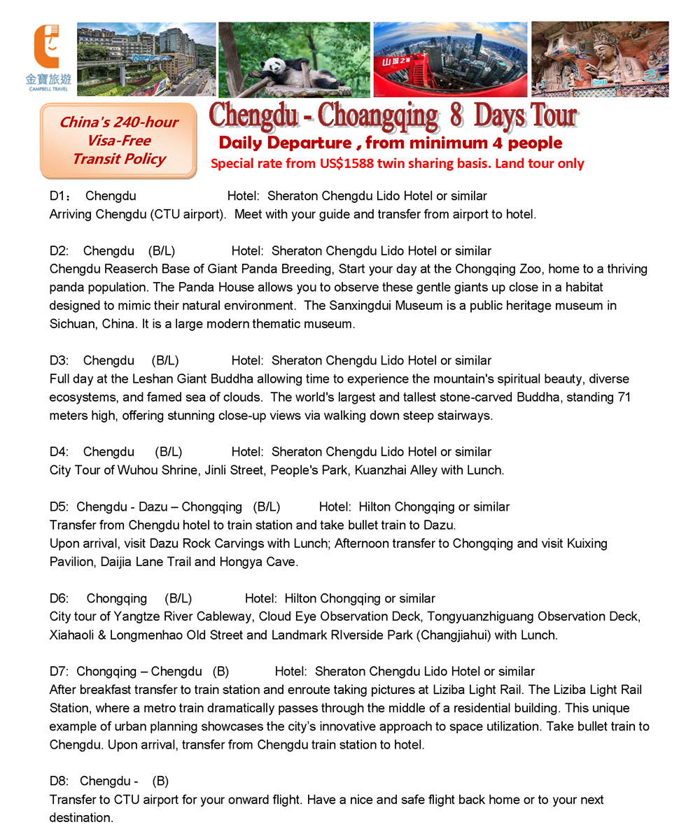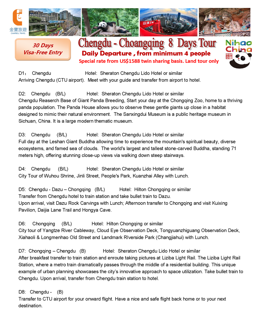 CHENGDU – CHONGQING 8 DAYS TOUR