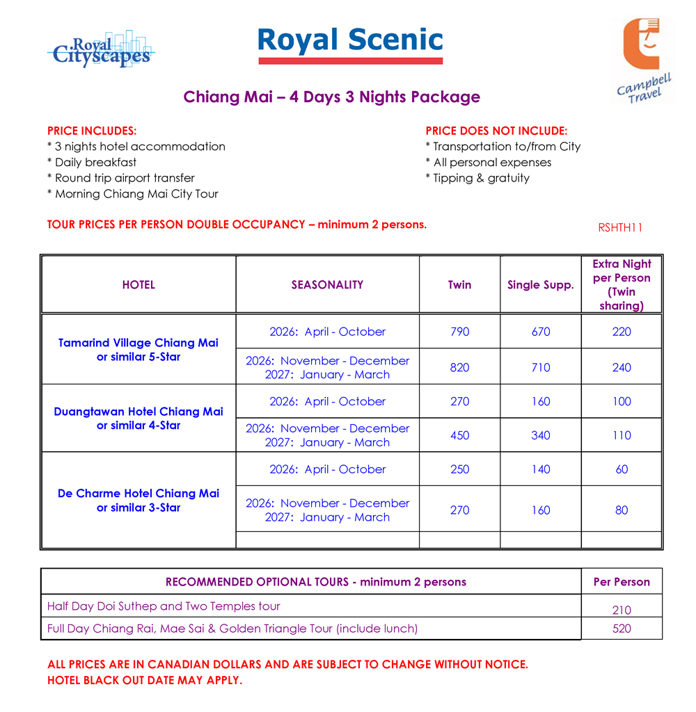 Chiang Mai – 4 Days 3 Nights Package (Royal Scenic)