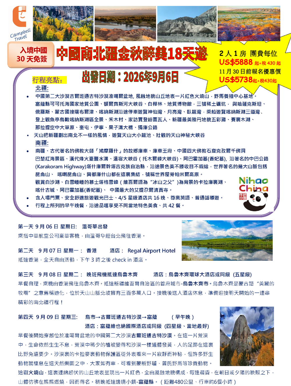 13天長江三峽豪華遊輪 × 熊貓專列 × 古城盛景尊爵之旅 (GH)