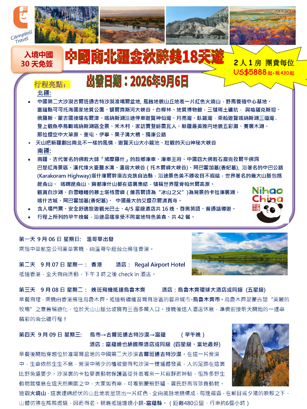 中國南北疆金秋美景18天遊