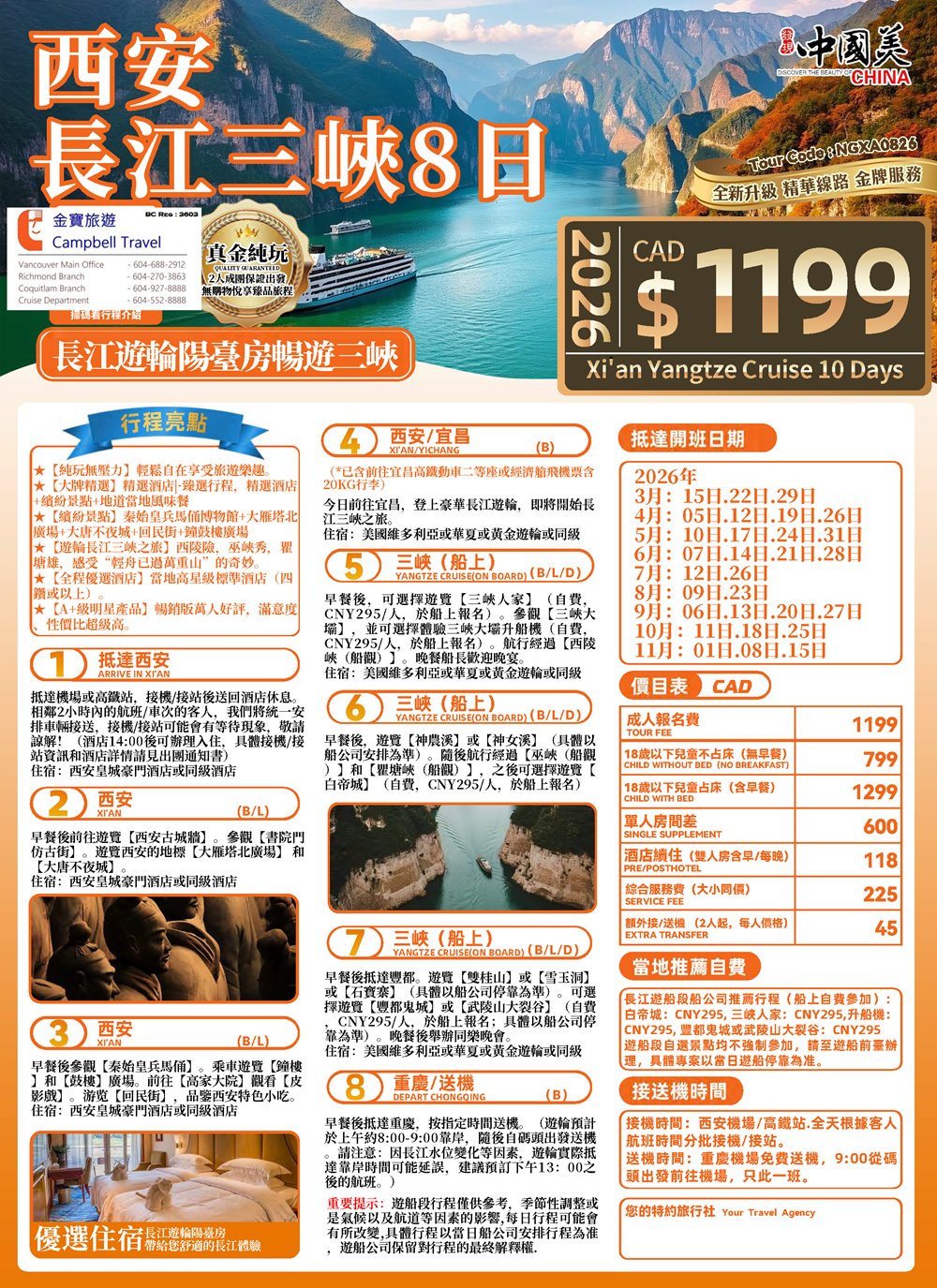 2026 西安,長江三峽8日 (中國美) (純玩)