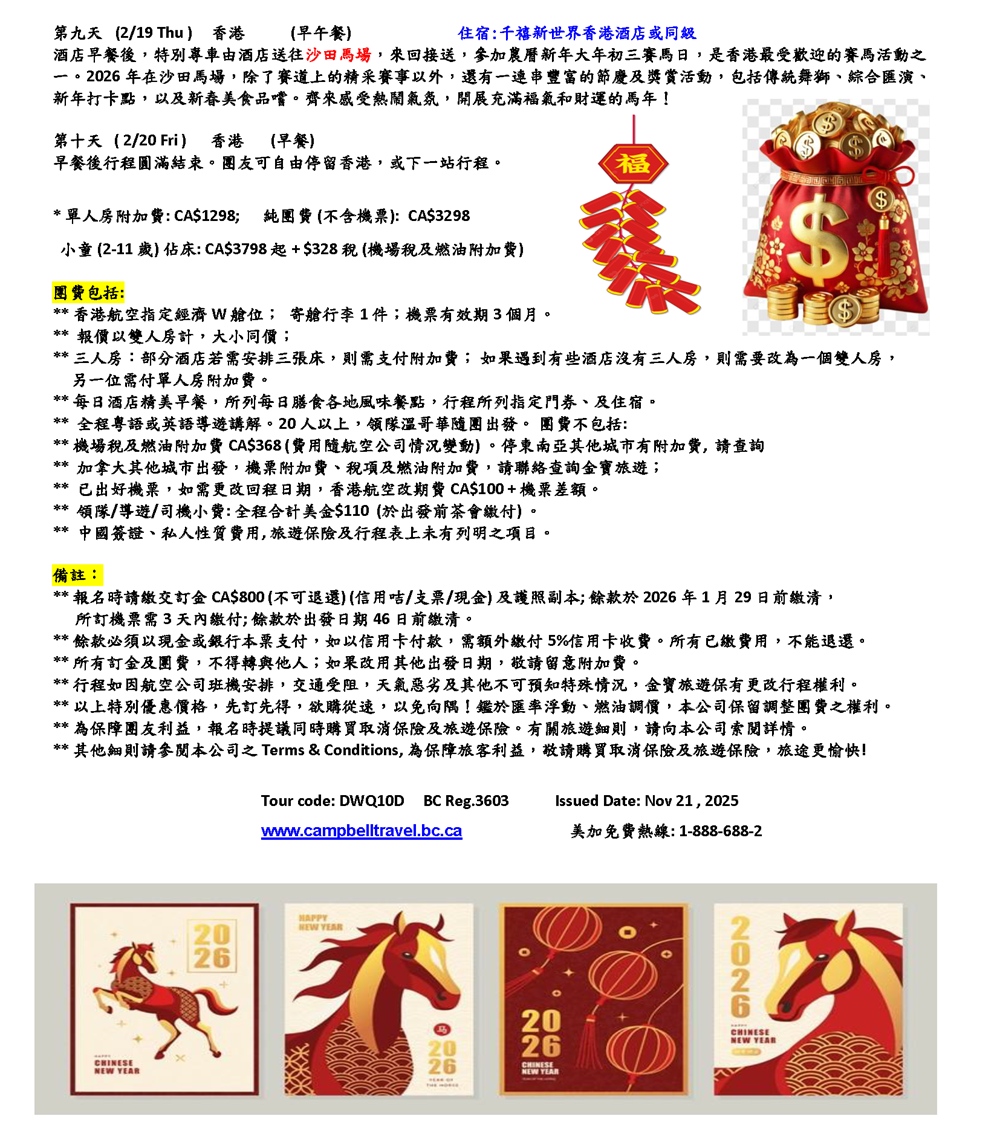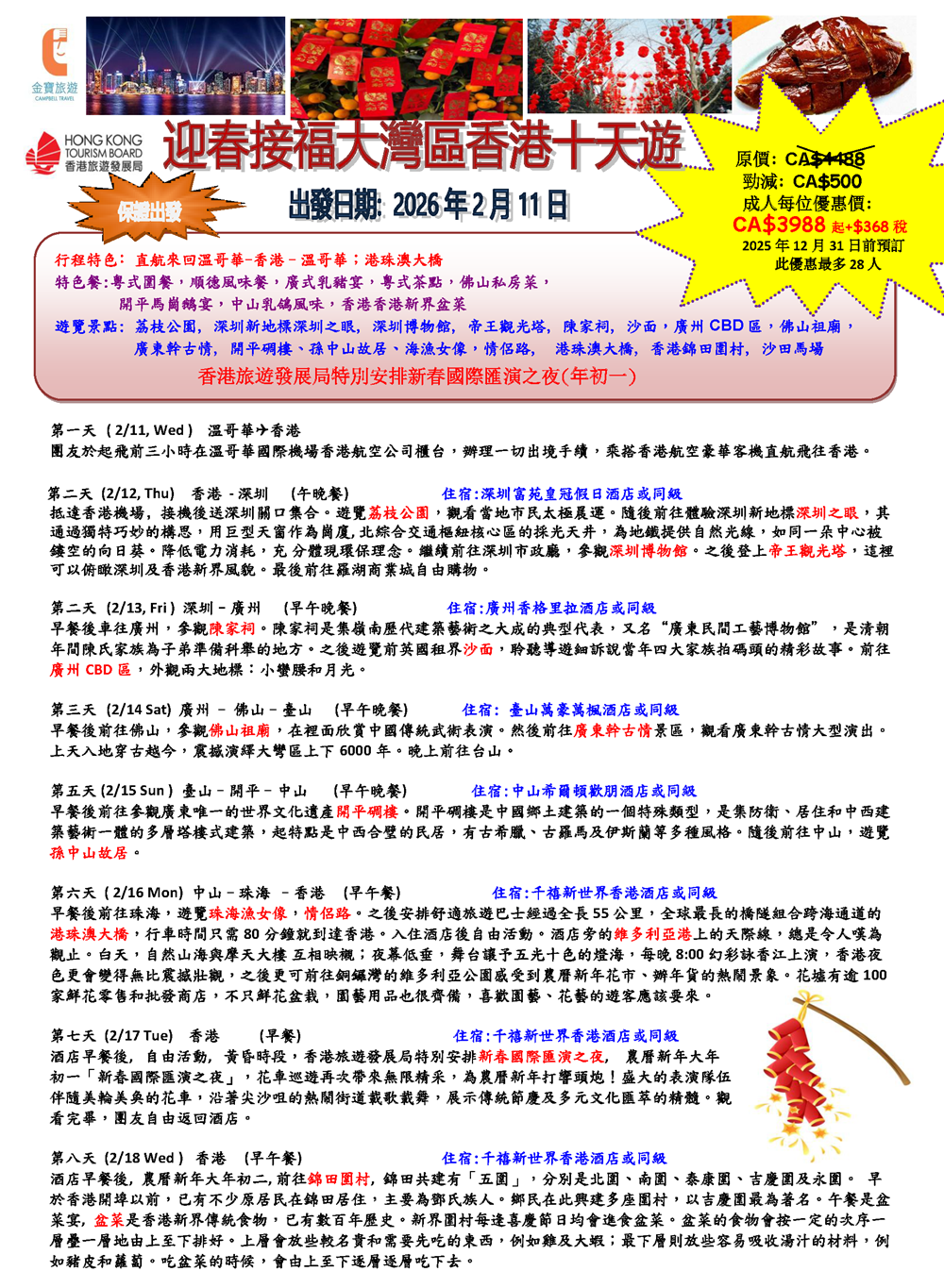 迎春接福大灣區香港十天遊