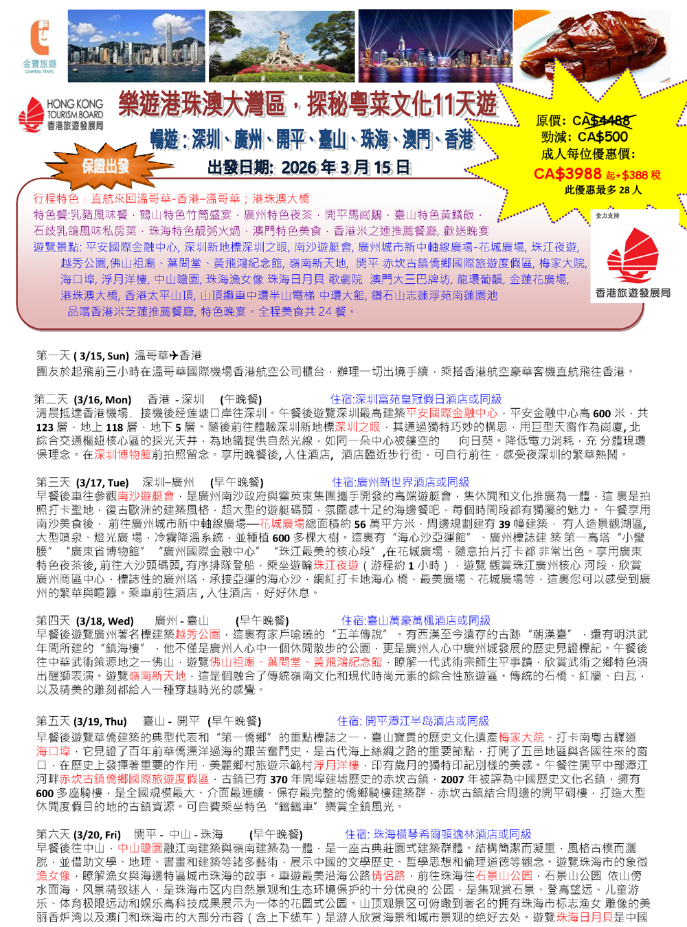 樂遊港珠澳大灣區 探秘粵菜文化11天遊
