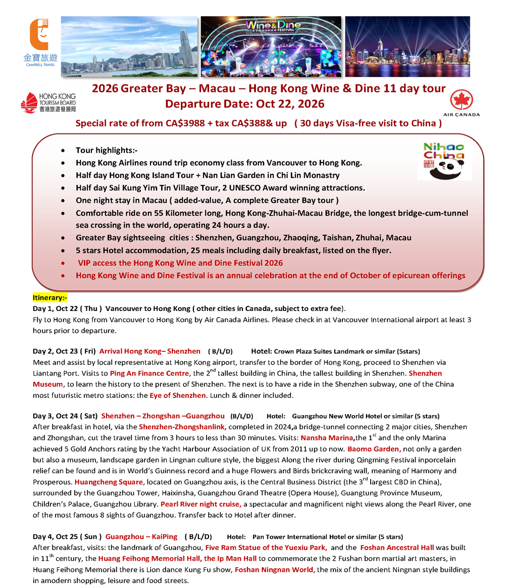 金寶旅遊是您旅遊的知己良朋 CAMPBELL TRAVEL IS A NAME TO TRUST !