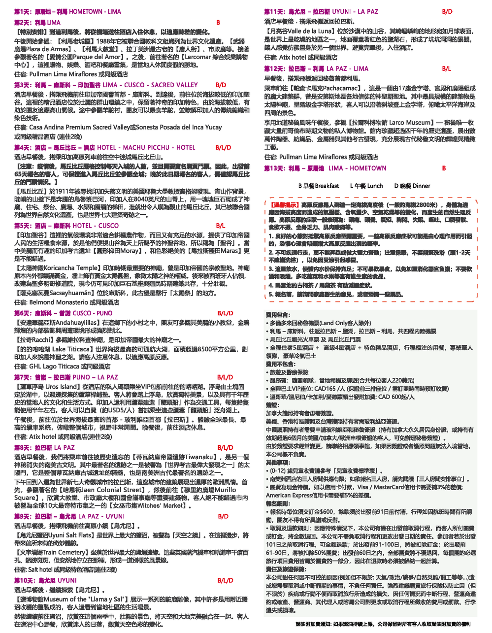 秘魯-玻利維亞-天空之鏡 13天絕美之旅 (TB)