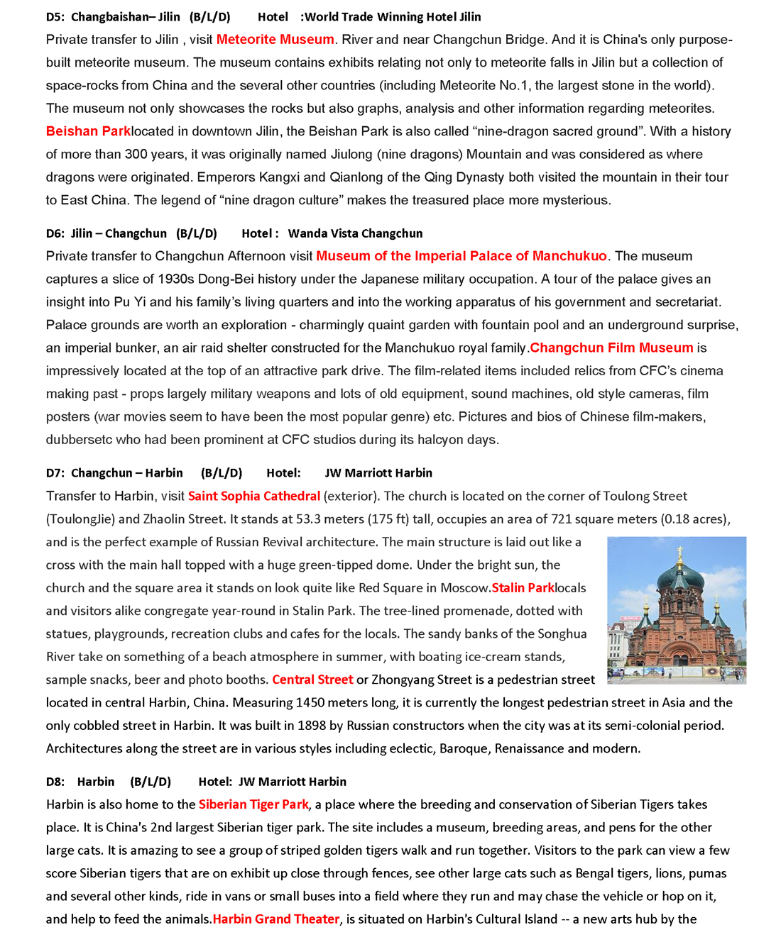NORTHEAST CHINA CHANGBAI MOUNTAIN 9-DAY WONDERFUL TOUR Departure Date : 2026.06.16 - 2026.11.11 PDF Download Terms and Conditions